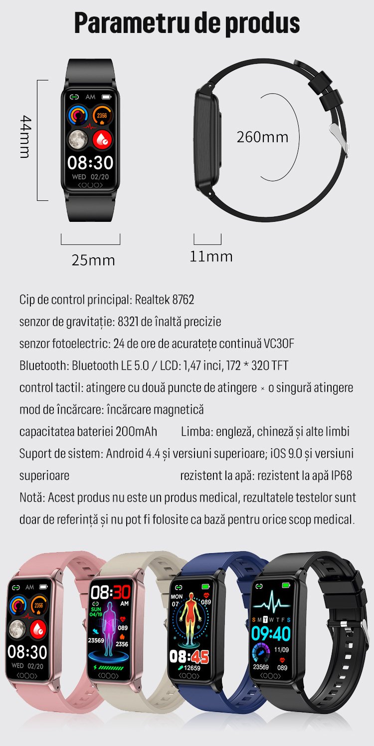 Brățară inteligentă pentru acid uric, lipide sanguine, glucoză, ritm cardiac
